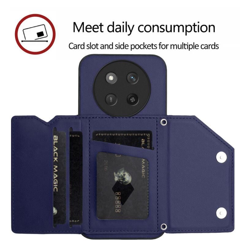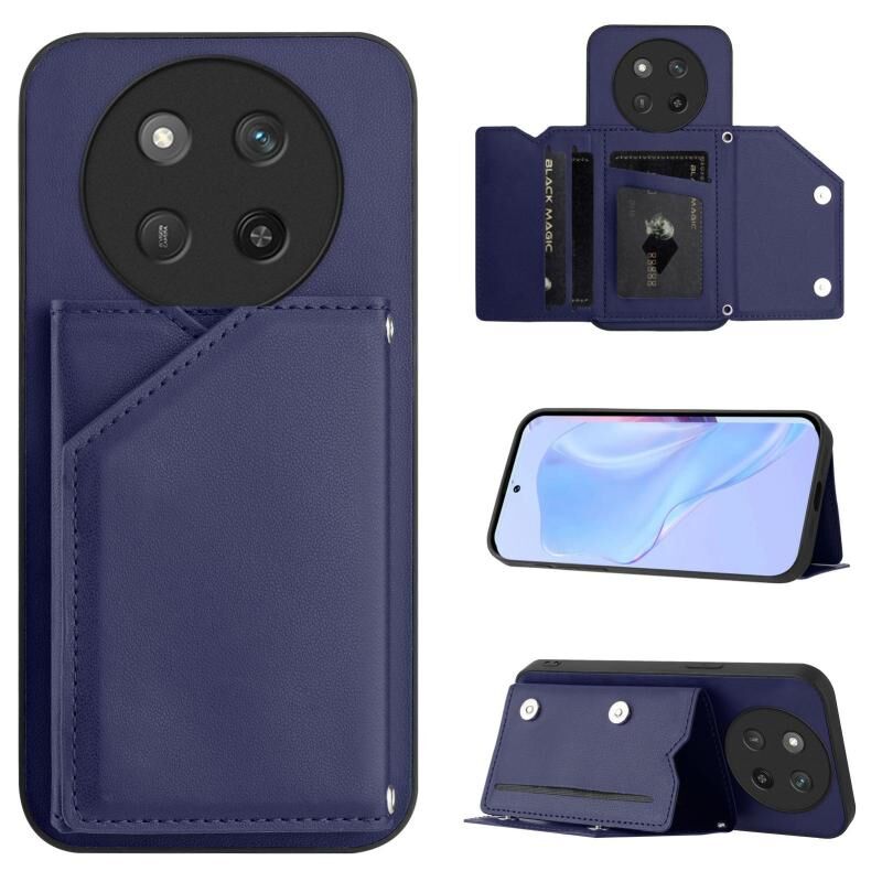 Θήκη τηλεφώνου με υφή δέρματος για Honor X60 Pro / X9c / Magic7 Lite με τέσσερις θήκες καρτών και λουρί καρπού (Μπλε)