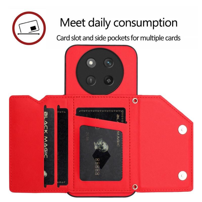 Θήκη τηλεφώνου με υφή δέρματος για Honor X60 Pro / X9c / Magic7 Lite με τέσσερις θήκες καρτών και λουρί καρπού (Κόκκινο)