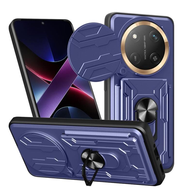 Θήκη κινητού τηλεφώνου για Honor X60 Pro / X9c με συρόμενο προστατευτικό κάμερας Camshield, κατασκευασμένη από TPU+PC με θήκη για κάρτες (Μπλε)