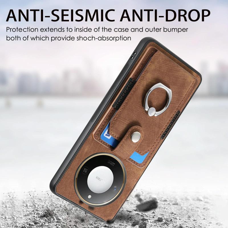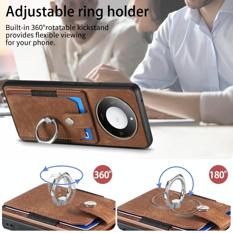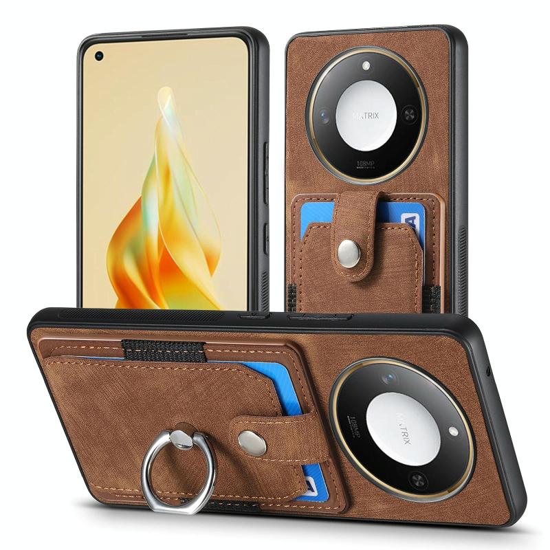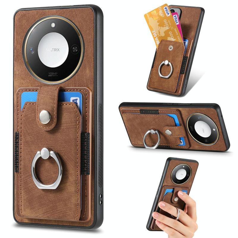 Θήκη κινητού τηλεφώνου Honor X60 Retro Skin-feel Ring Card Wallet (Καφέ)