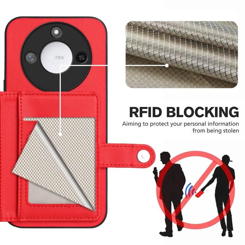 Θήκη τηλεφώνου για Honor X60 / X9c με έξυπνο κουμπί, κάρτες και προστασία RFID κατά της κλοπής (Ροζ)