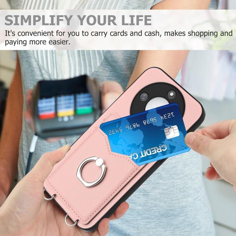 Θήκη κινητού τηλεφώνου με δακτύλιο και κάρτα για Honor X60 / X9c Smart R20 (ρόζ)