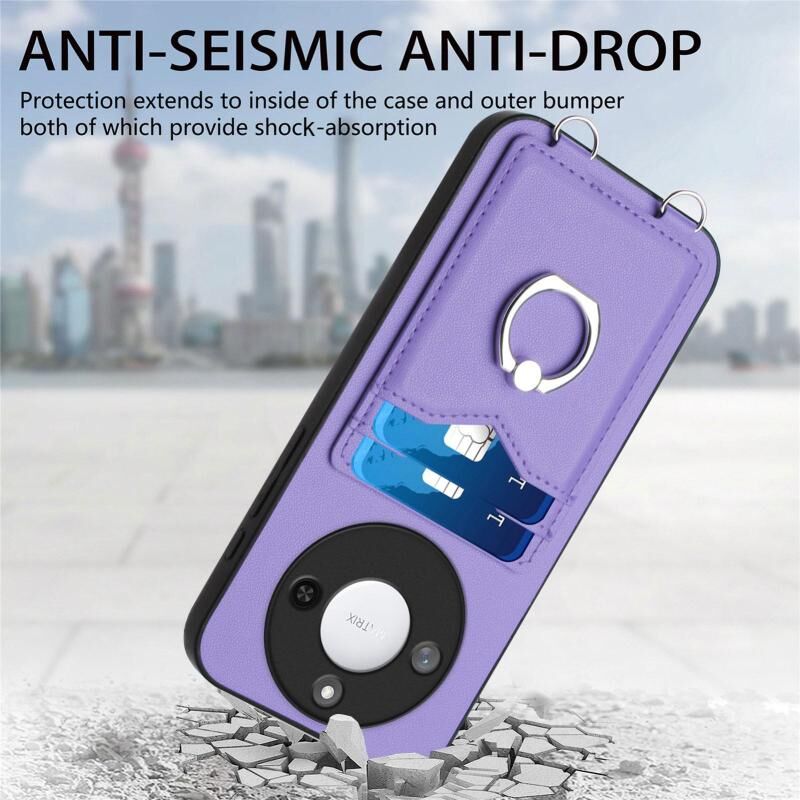 Θήκη κινητού τηλεφώνου με δακτύλιο και κάρτα για Honor X60 / X9c Smart R20 (Μωβ)