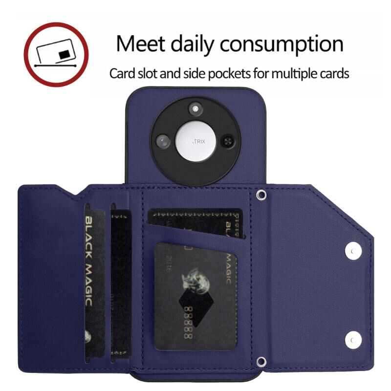 1. Πολυλειτουργικός Σχεδιασμός: Συνδυάζει λειτουργίες θήκης τηλεφώνου και πορτοφολιού για εύκολη μεταφορά.
