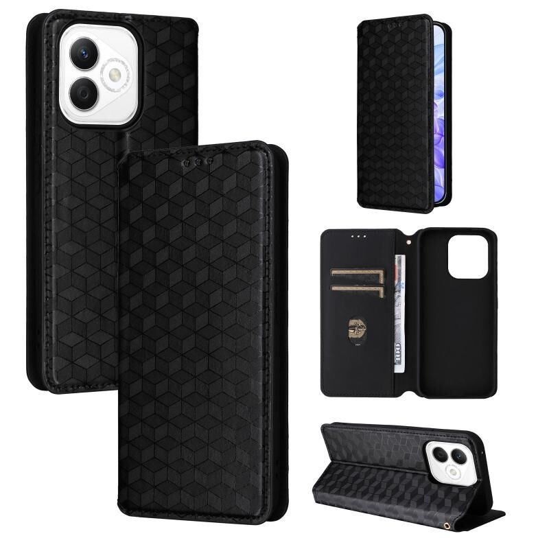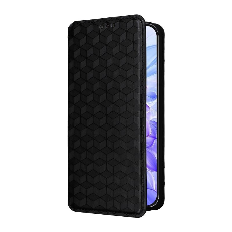 Θήκη τηλεφώνου δερμάτινη αναδιπλούμενη με υφή κυβικού πλέγματος για Honor X60i 5G (Μαύρο)