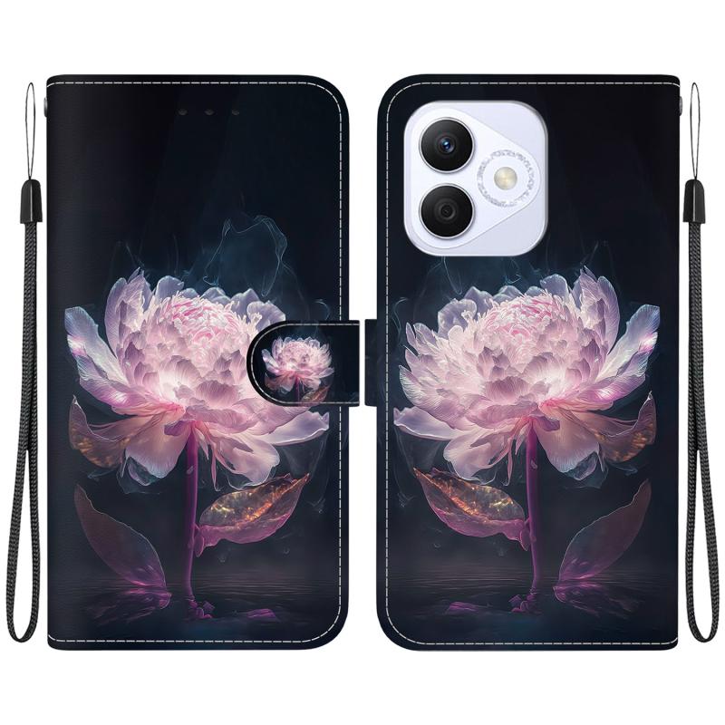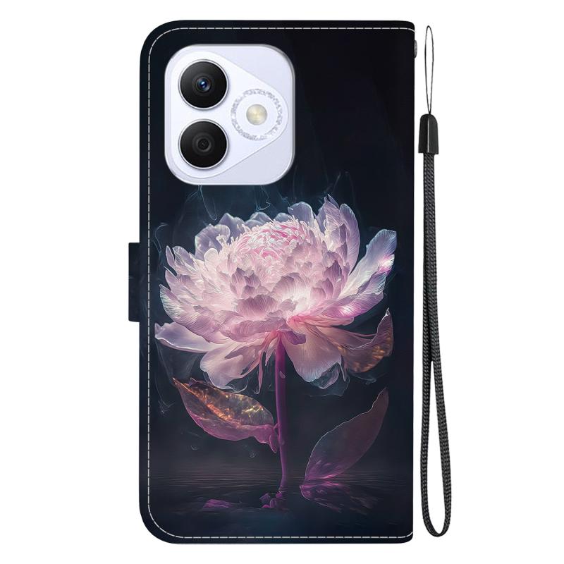 For Honor X60i Crystal Texture Colored Drawing Leather Phone Case(Purple Peony)