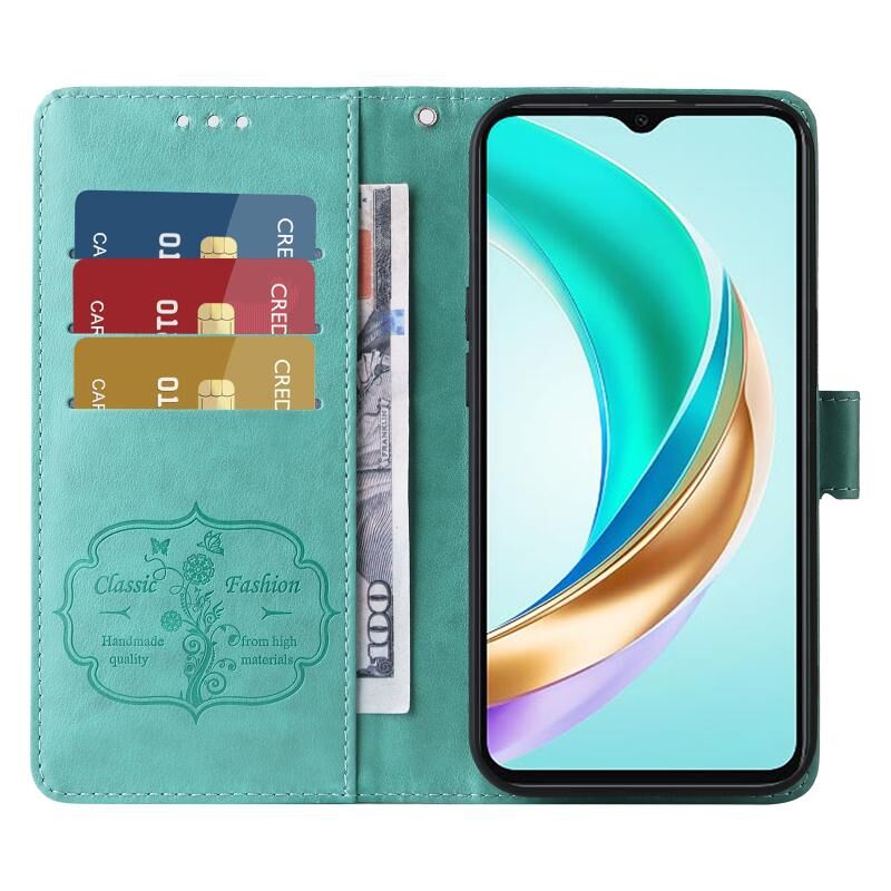 For Honor X60i Embossed Butterfly Flowers Leather Phone Case(Green)