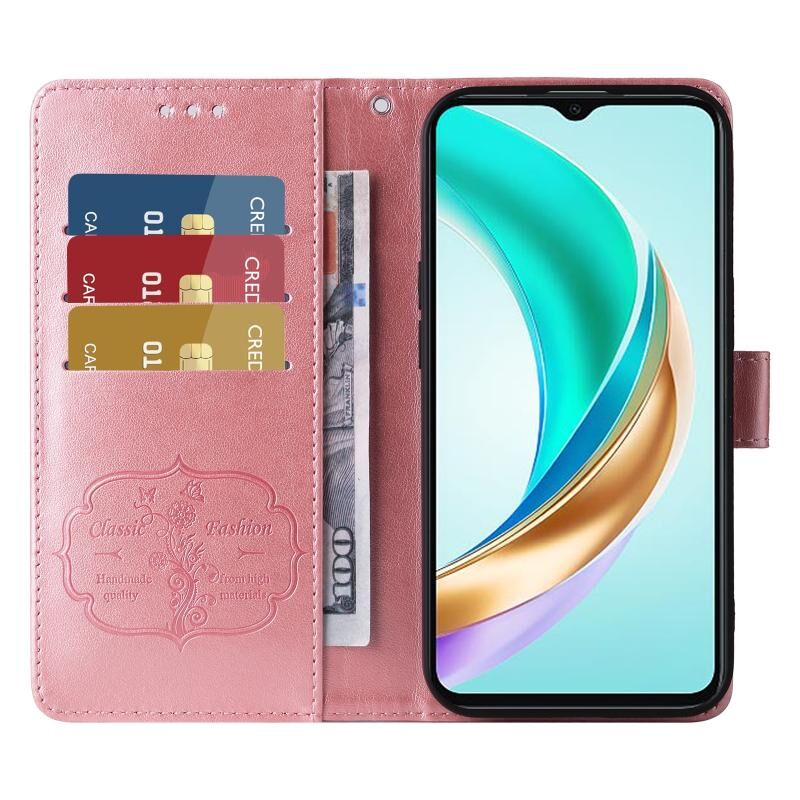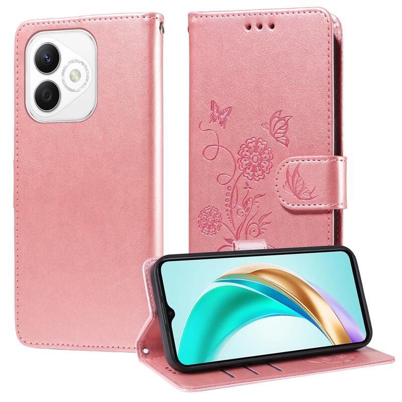 For Honor X60i Embossed Butterfly Flowers Leather Phone Case(Rose Gold)