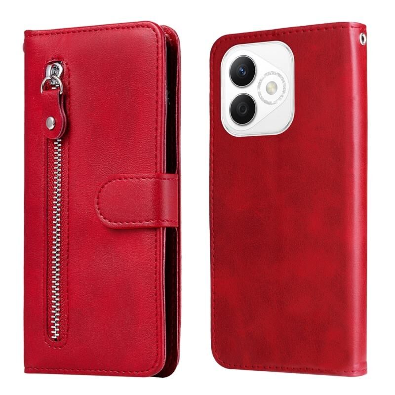 Για Honor X60i Μόδα μοσχάρι υφή φερμουάρ δερμάτινη θήκη τηλεφώνου (κόκκινο)