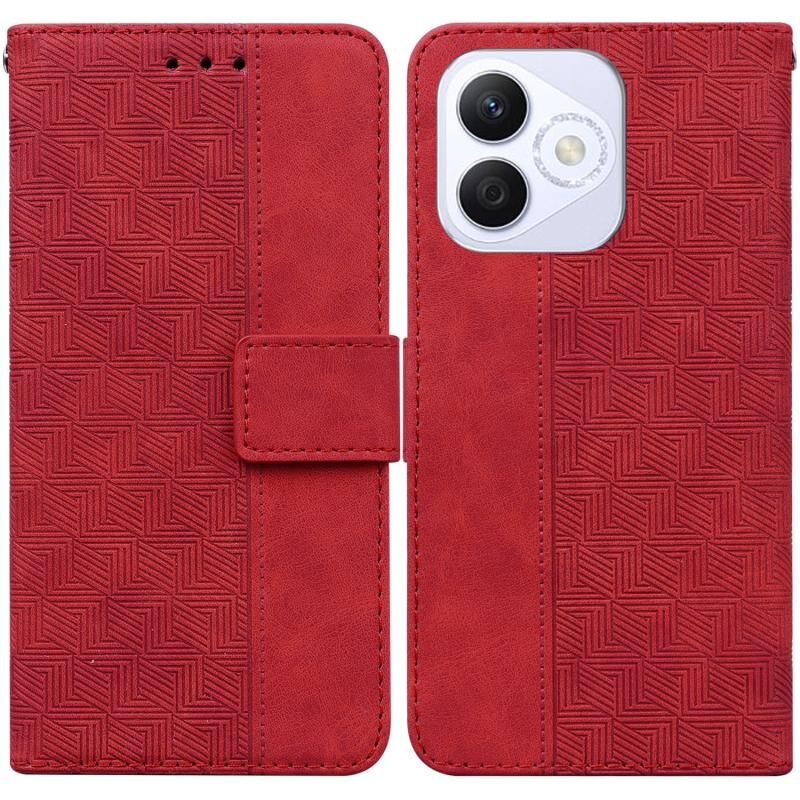 Θήκη τηλεφώνου Honor X60i από δέρμα με γεωμετρική ανάγλυφη διακόσμηση (Κόκκινο)