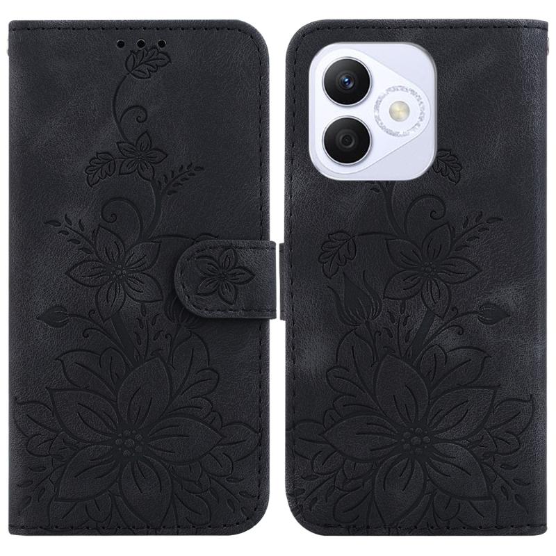 For Honor X60i Lily Embossed Leather Phone Case(Black)