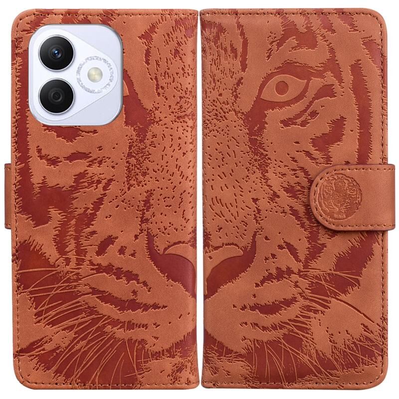 Θήκη τηλεφώνου από δέρμα με σχέδιο Tiger Embossing για Honor X60i (Μαύρο)