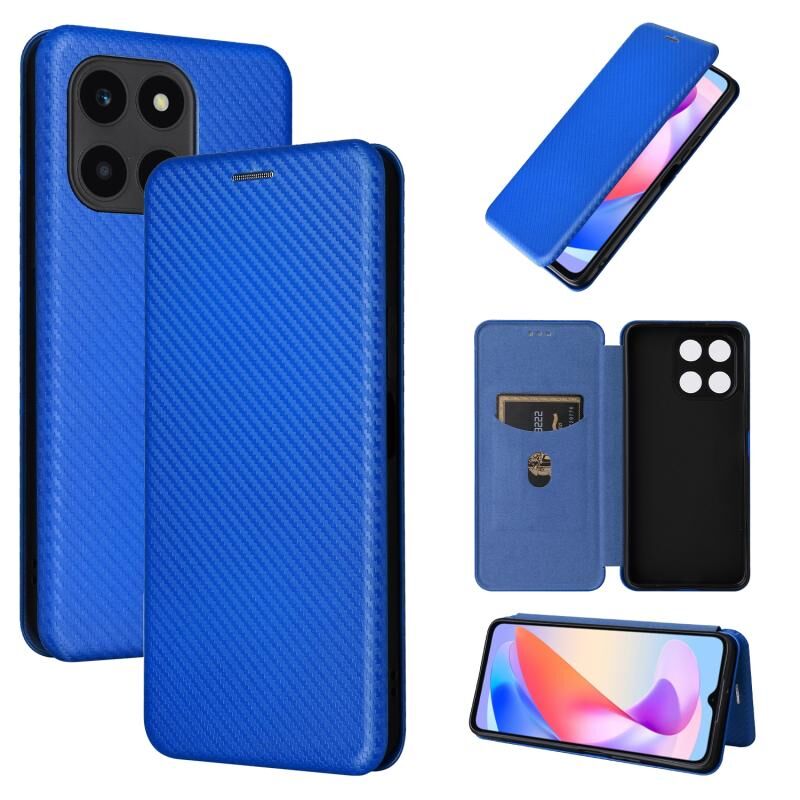 Θήκη τηλεφώνου από δέρμα με υφή ανθρακονήματος για Honor X6a 4G (Μαύρο)