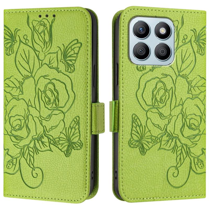 For Honor X6a 4G Embossed Rose RFID Anti-theft Leather Phone Case(Green)