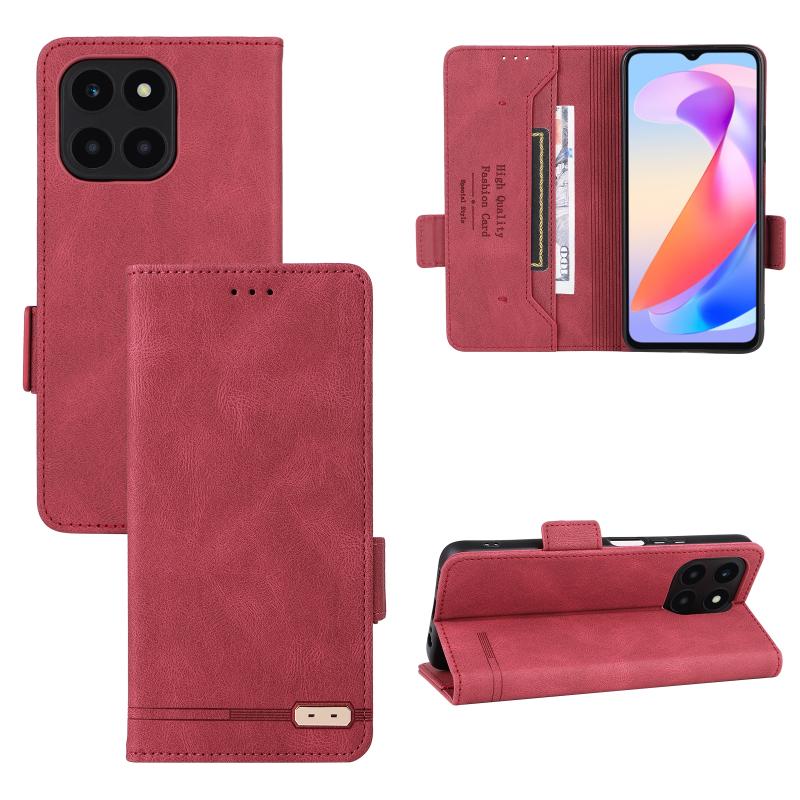 For Honor X6a 4G Magnetic Clasp Flip Leather Phone Case(Red)