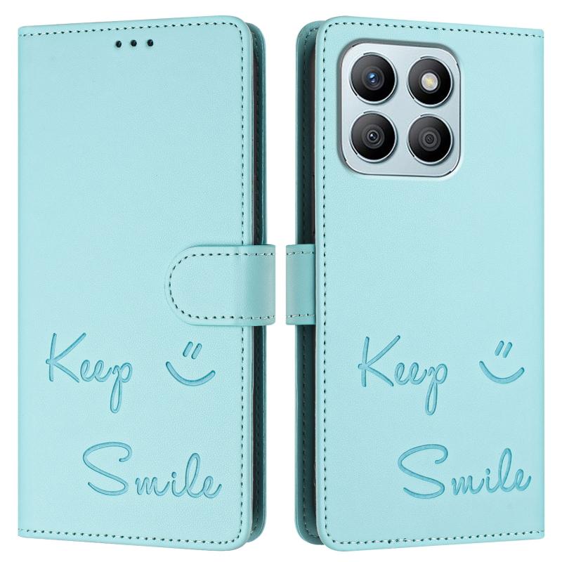 For Honor X6a 4G Smile Embossing RFID Leather Phone Case(Mint Green)