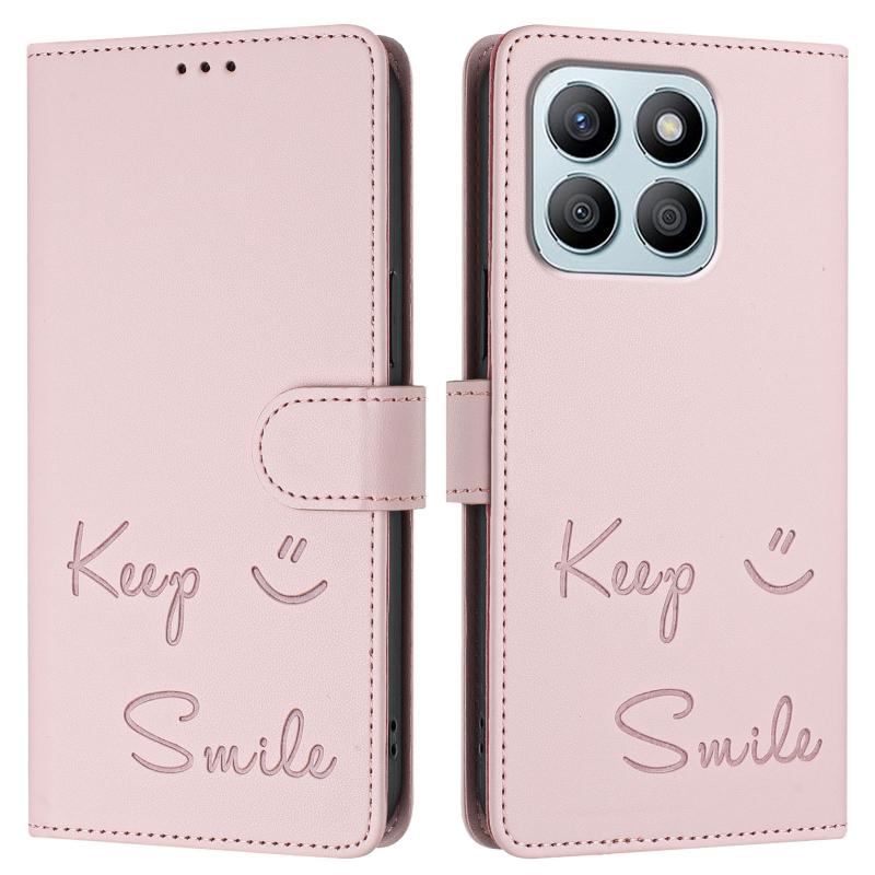 For Honor X6a 4G Smile Embossing RFID Leather Phone Case(Pink)