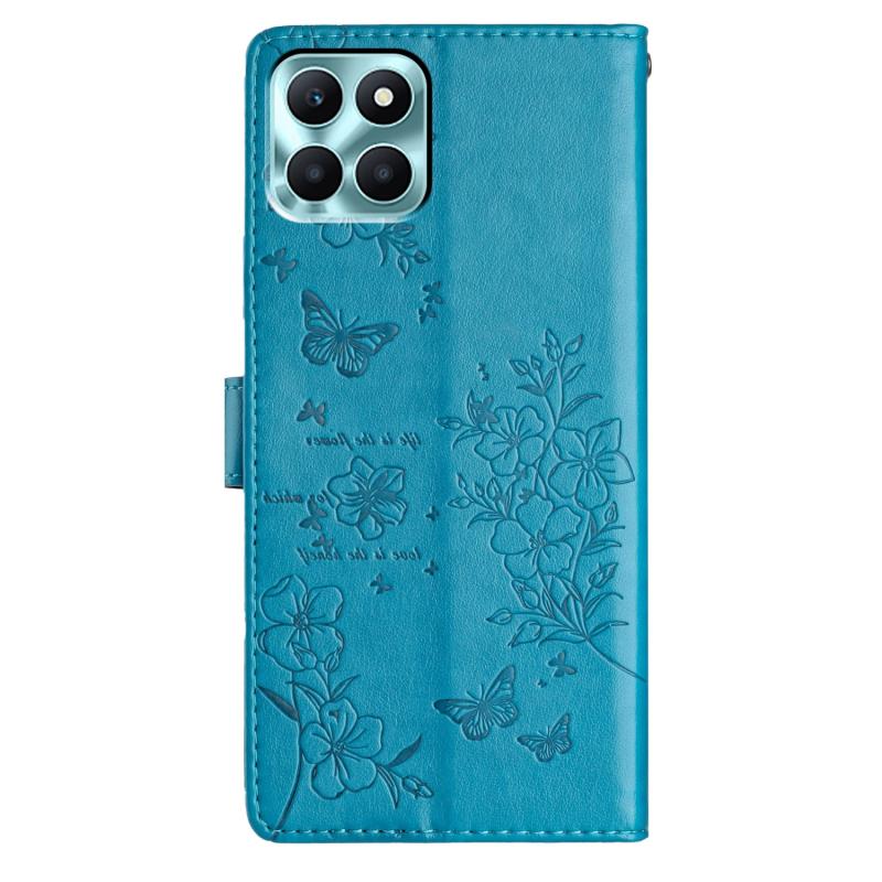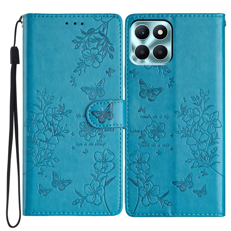 For Honor X6a Butterflies And Flowers Leather Phone Case(Blue)
