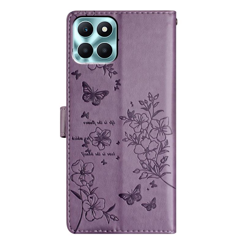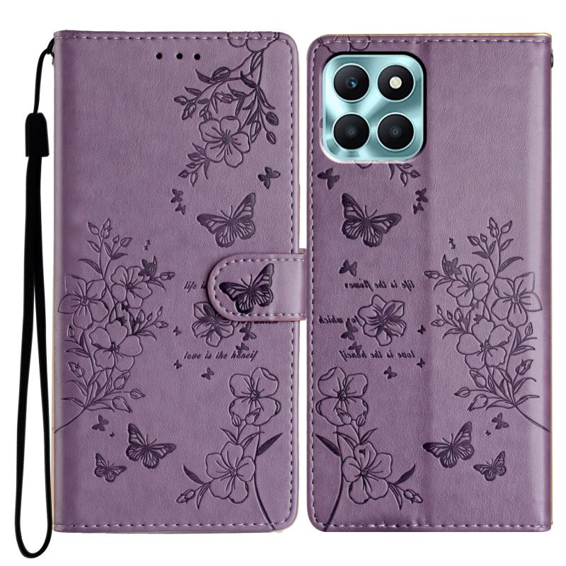 For Honor X6a Butterflies And Flowers Leather Phone Case(Purple)