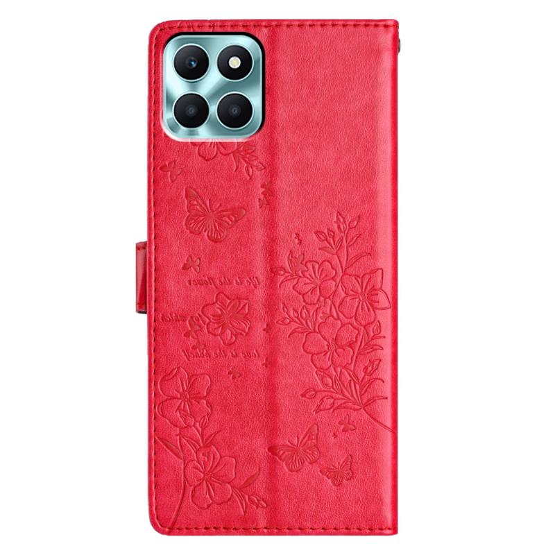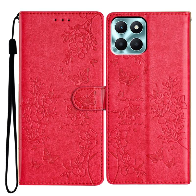 For Honor X6a Butterflies And Flowers Leather Phone Case(Red)