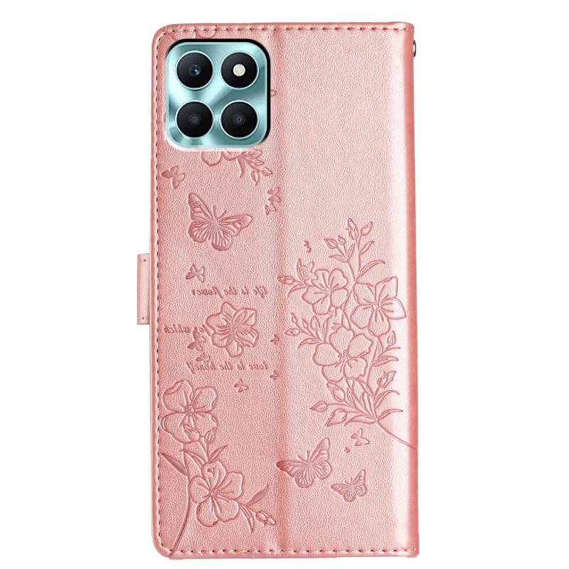 For Honor X6a Butterflies And Flowers Leather Phone Case(Rose Gold)