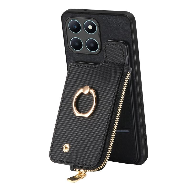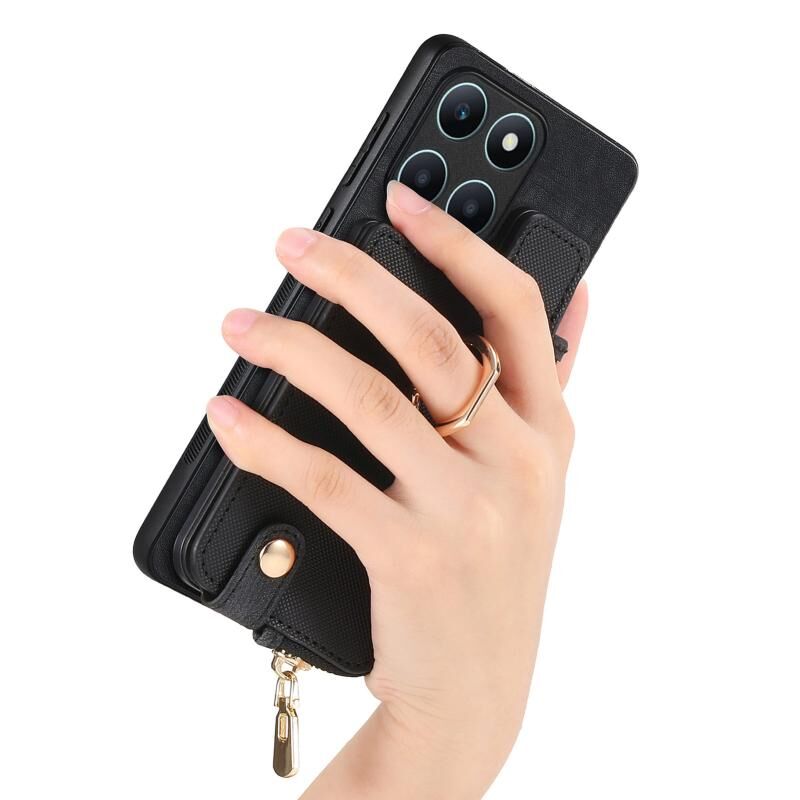 2. Λειτουργία πορτοφολιού με φερμουάρ: Η δερμάτινη θήκη είναι εξοπλισμένη με υποδοχές για κάρτες και ένα μικρό ποσό μετρητών.