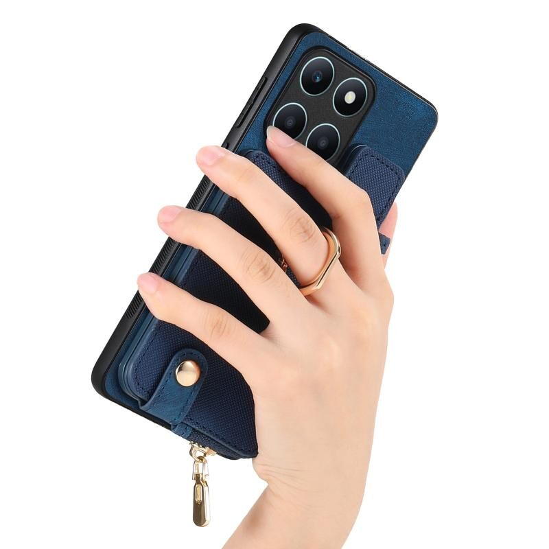 2. Λειτουργία πορτοφολιού με φερμουάρ: Η δερμάτινη θήκη είναι εξοπλισμένη με υποδοχές για κάρτες και ένα μικρό ποσό μετρητών.