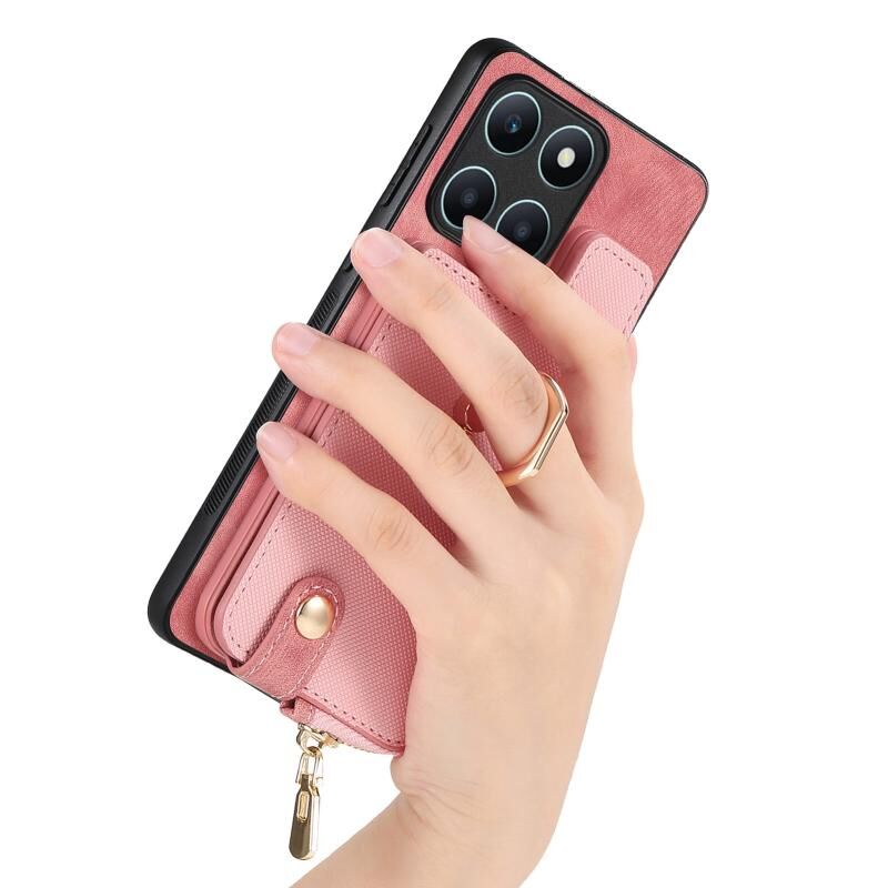 Θήκη κινητού τηλεφώνου Honor X6a από δέρμα με σταυρωτό σχέδιο, κάθετη τσέπη με φερμουάρ (Καφέ)