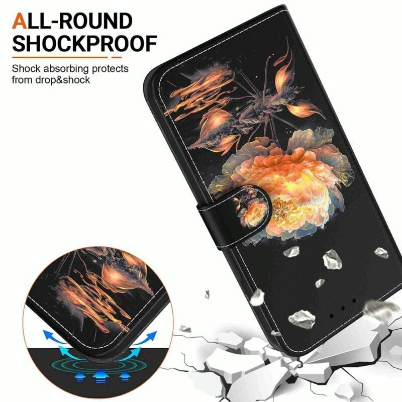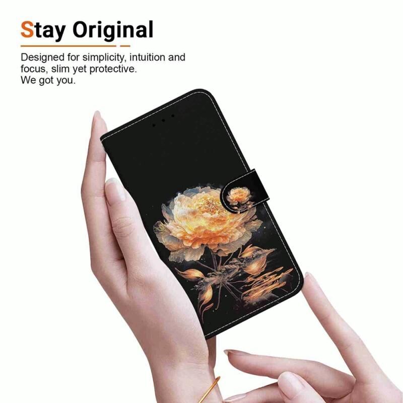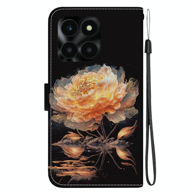 Θήκη τηλεφώνου Honor X6a με κρυσταλλική υφή, πολύχρωμη σχεδίαση από δέρμα (Μωβ Παιώνια)
