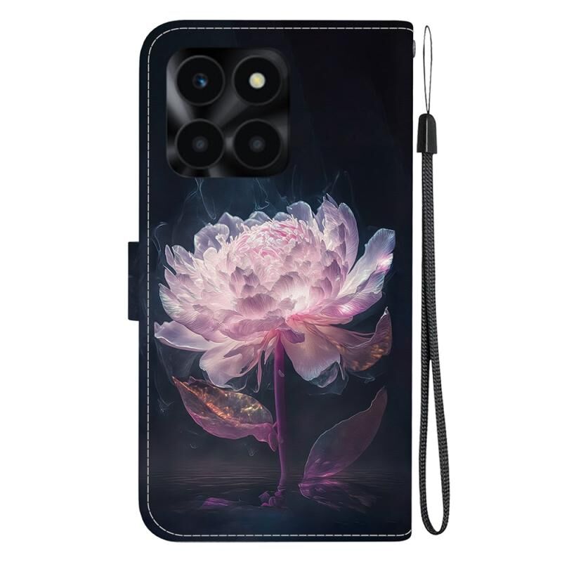 Θήκη τηλεφώνου Honor X6a με κρυσταλλική υφή, πολύχρωμη σχεδίαση από δέρμα (Μωβ παιώνια)