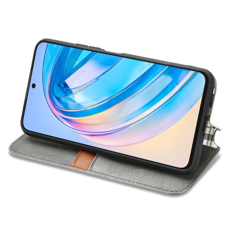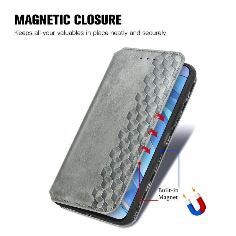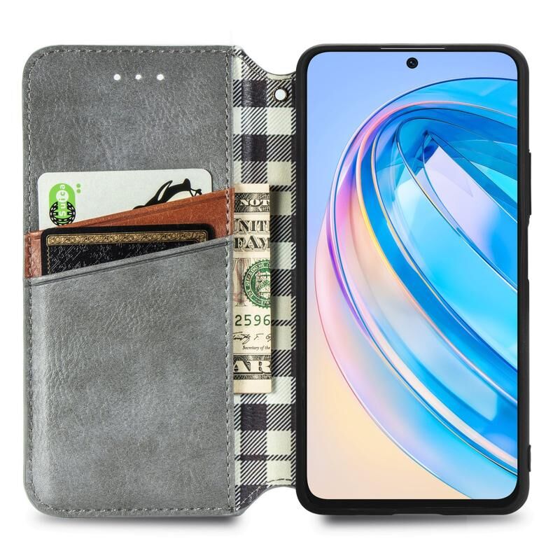 Για Honor X6a Κυβικό πλέγμα πιέζεται μαγνητική δερμάτινη θήκη τηλεφώνου (γκρι)