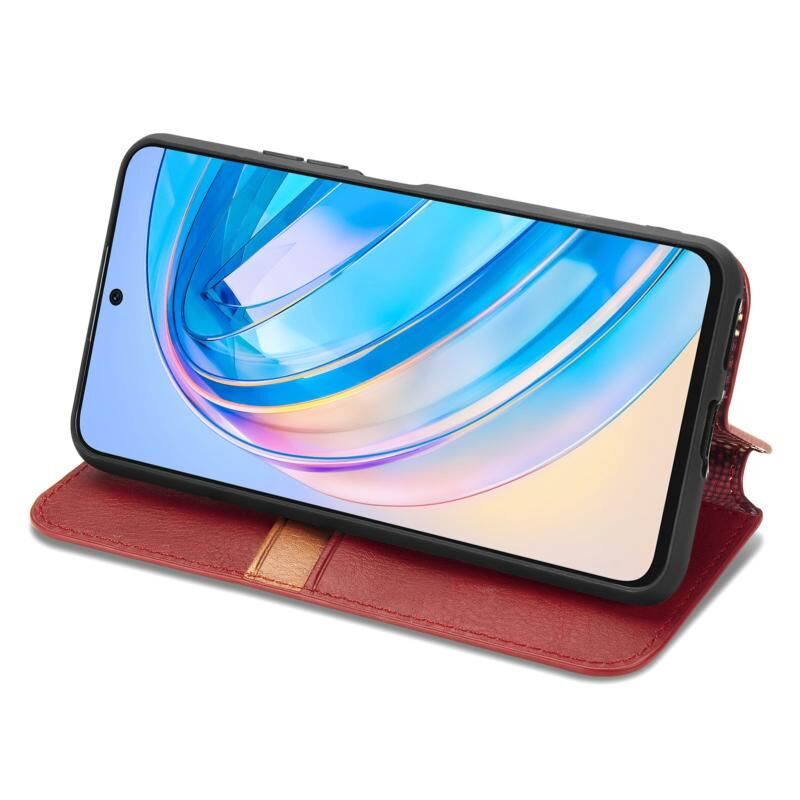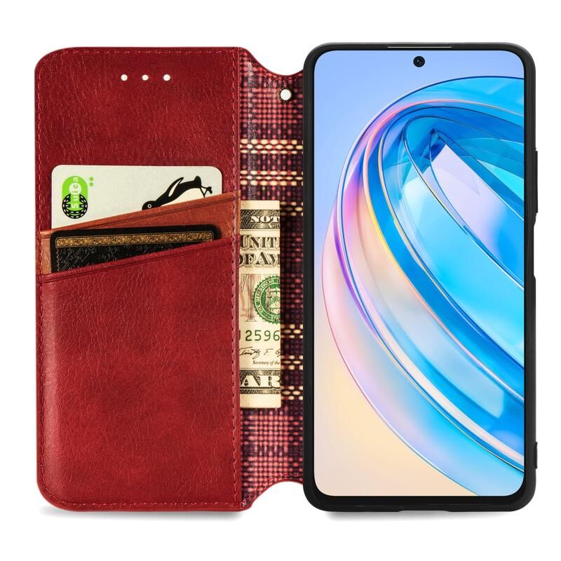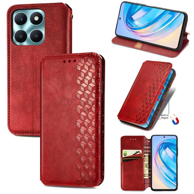 Για Honor X6a Cubic Grid πιέζεται μαγνητική δερμάτινη θήκη τηλεφώνου (κόκκινο)