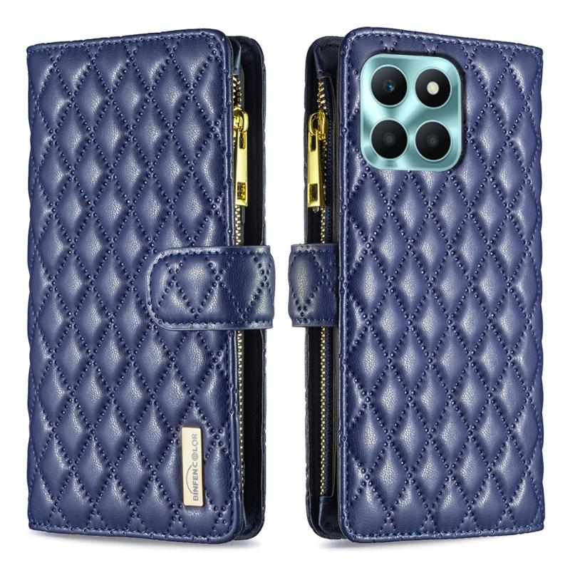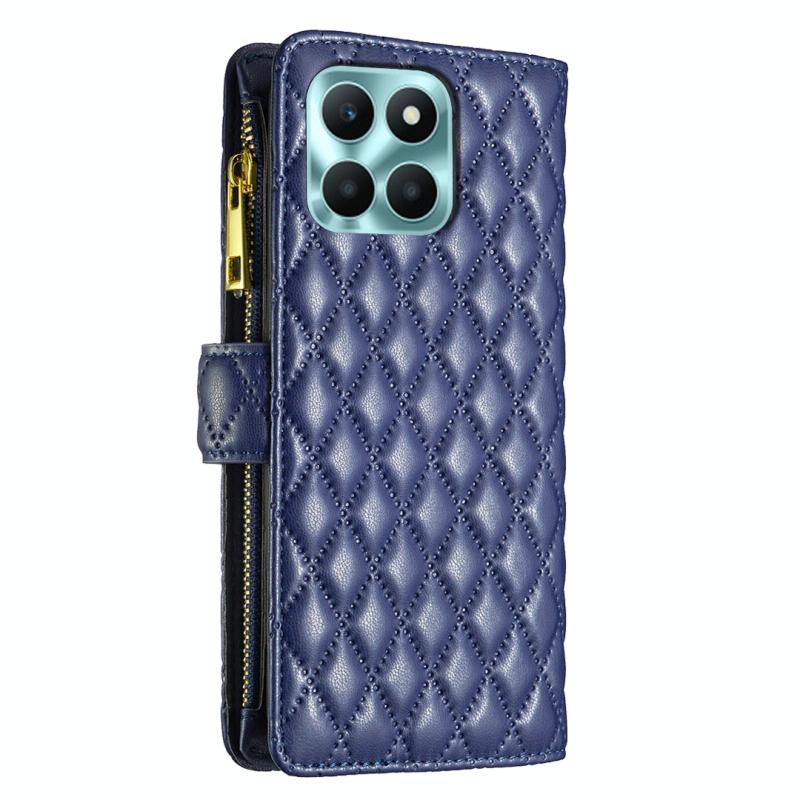 For Honor X6a Diamond Lattice Zipper Wallet Leather Flip Phone Case(Blue)