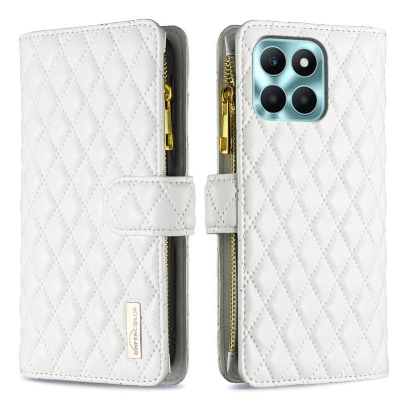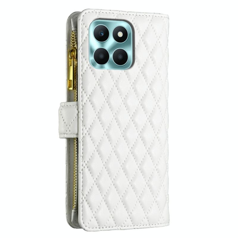 For Honor X6a Diamond Lattice Zipper Wallet Leather Flip Phone Case(White)
