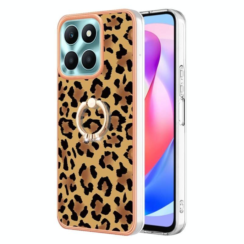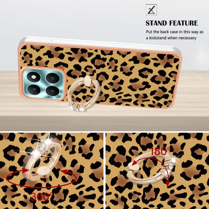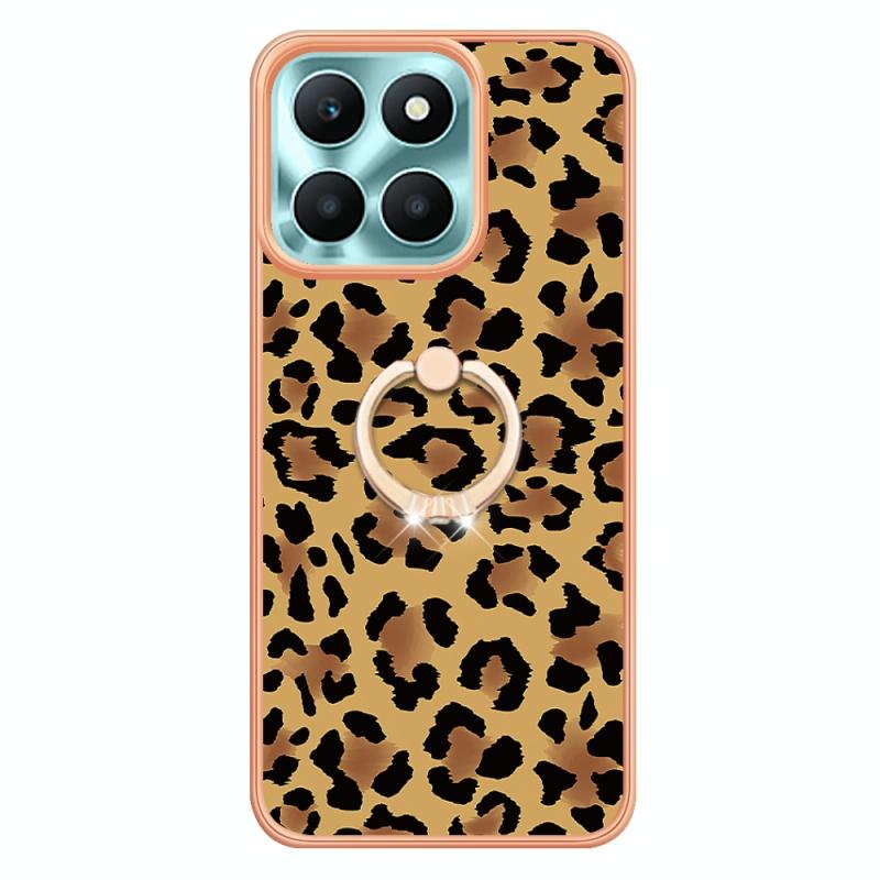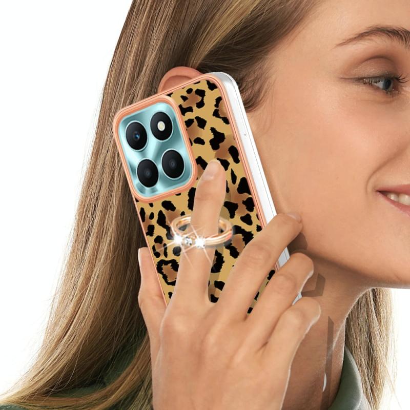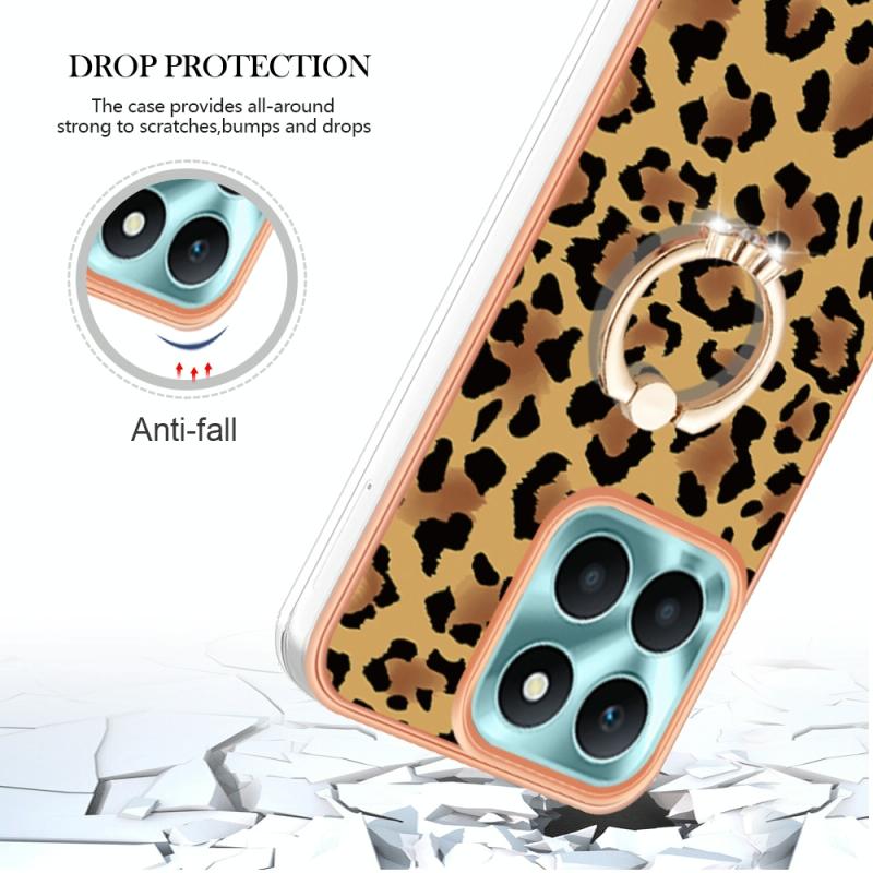 Θήκη τηλεφώνου για Honor X6a με ηλεκτρολυτική επιμετάλλωση, διπλής όψης IMD με δακτύλιο στήριξης (εκτύπωση λεοπάρδαλης)