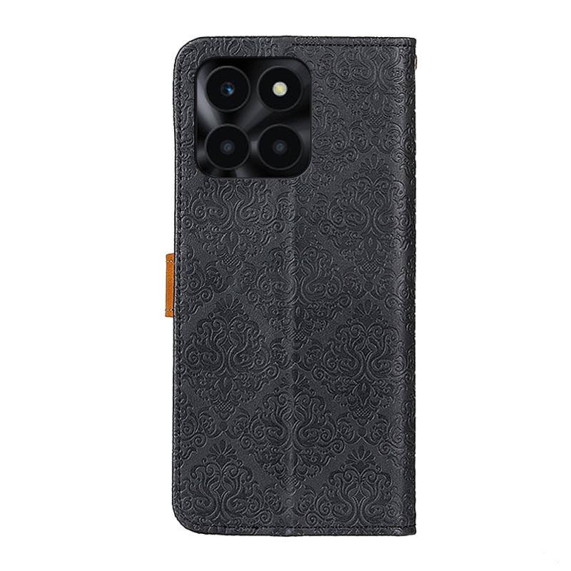For Honor X6a European Floral Embossed Leather Phone Case(Black)