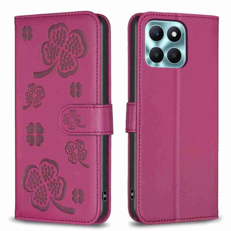 For Honor X6a Four-leaf Embossed Leather Phone Case(Rose Red)
