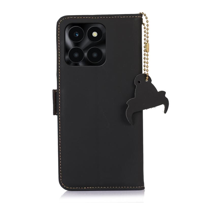 Θήκη τηλεφώνου από γνήσιο δέρμα με μαγνητικό κλείσιμο και προστασία RFID για Honor X6a (Μαύρο)