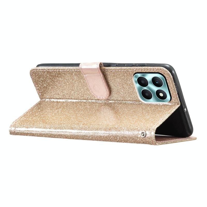 Για Honor X6a Glitter Powder Flip δέρμα τηλέφωνο υπόθεση (χρυσό)