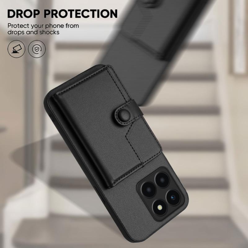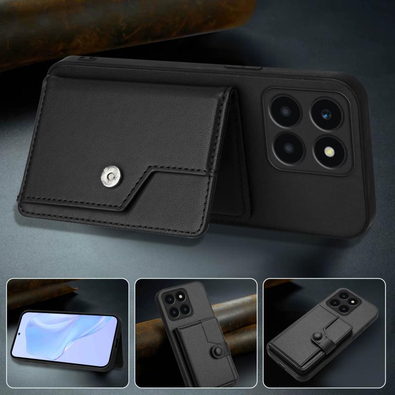 For Honor X6a Global Button Card Bag RFID Anti-theft Phone Case(Black)