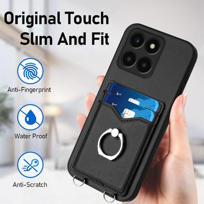 Για Honor X6a Παγκόσμια R20 Crossbody σχοινί δαχτυλίδι κάρτα κάτοχος τηλέφωνο υπόθεση (μαύρο)