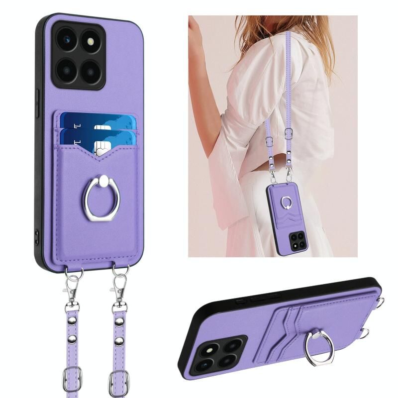 Για Honor X6a Global R20 Crossbody σχοινί δαχτυλίδι κάρτα κάτοχος υπόθεση τηλεφώνου (μωβ)