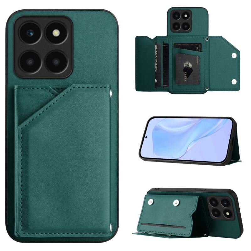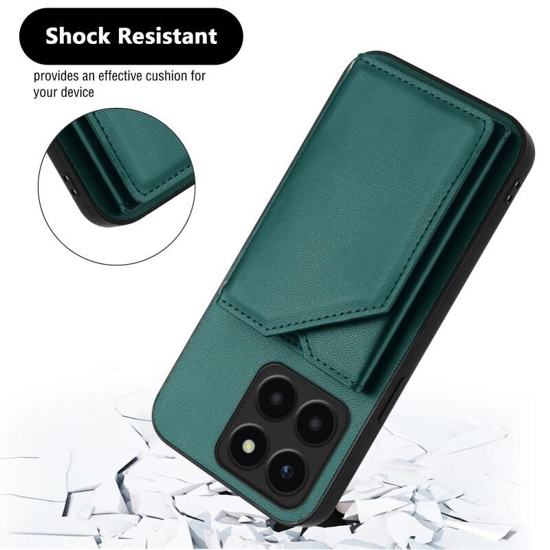 Θήκη τηλεφώνου για Honor X6A Global με αίσθηση δέρματος, τέσσερις θήκες καρτών και λουρί καρπού (Ροζ)