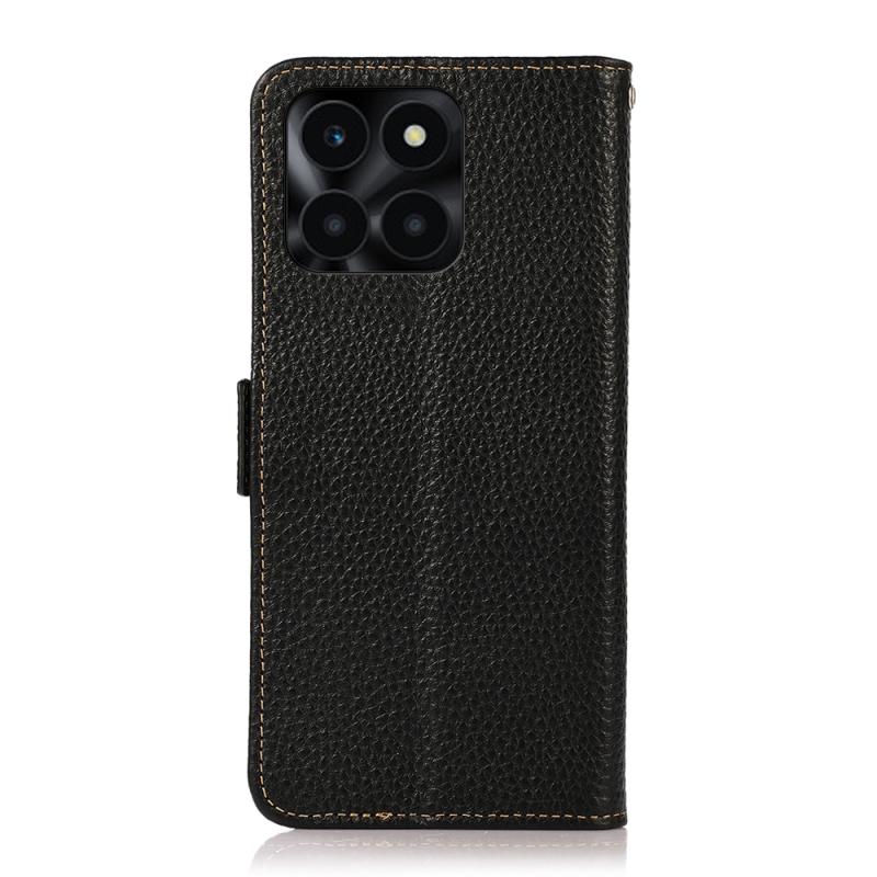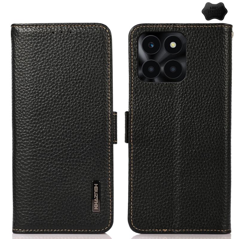 For Honor X6A KHAZNEH Side-Magnetic Litchi Genuine Leather RFID Phone Case(Black)