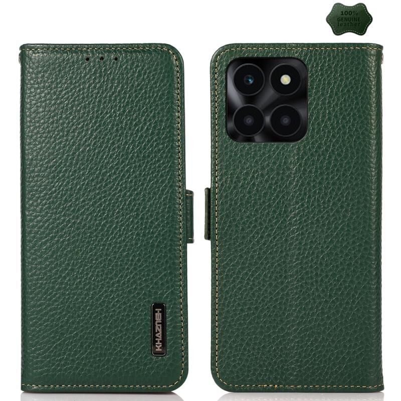 Θήκη κινητού τηλεφώνου Honor X6A KHAZNEH με μαγνητική πλευρά, γνήσιο δέρμα Litchi, RFID (Μαύρο)