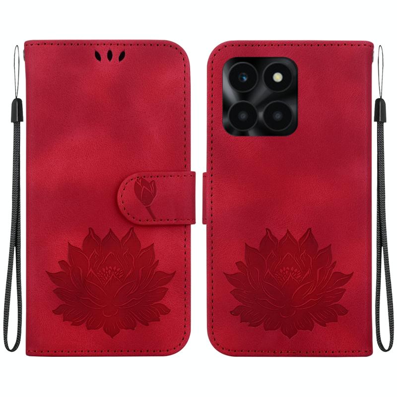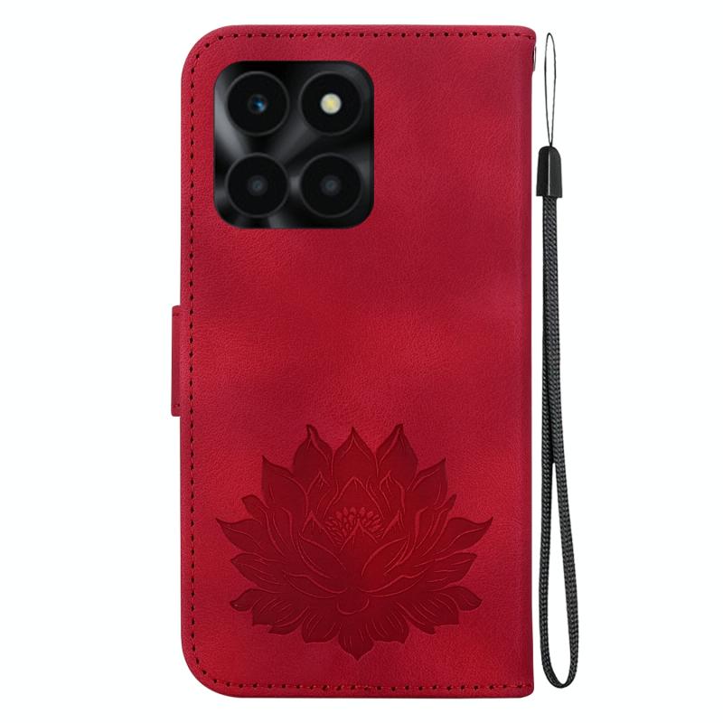 For Honor X6a Lotus Embossed Leather Phone Case(Red)