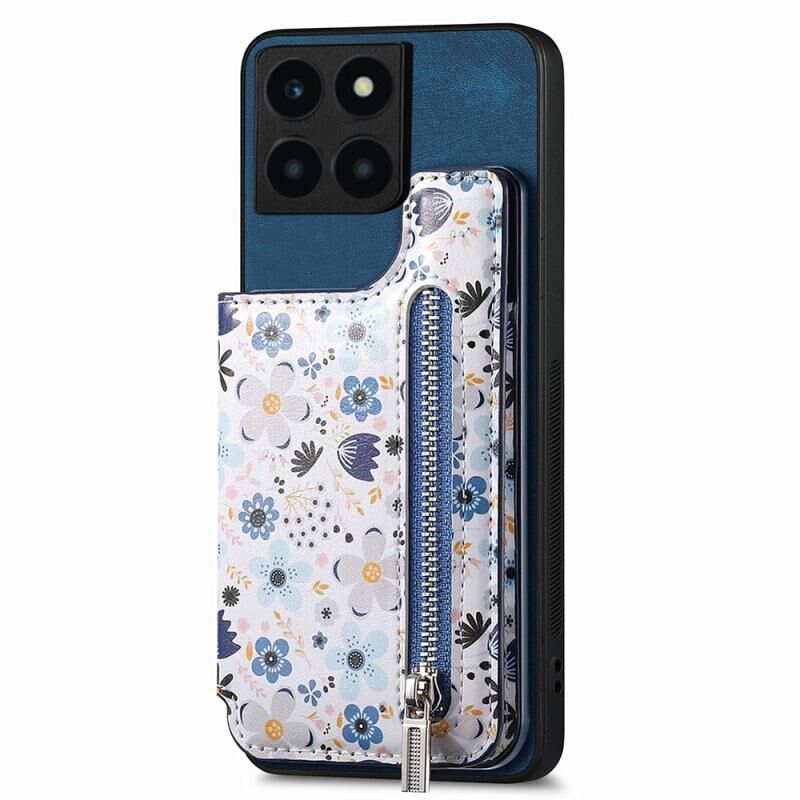 Θήκη κινητού τηλεφώνου Honor X6a με σχέδιο retro, φερμουάρ και θήκη πορτοφολιού (Ροζ)