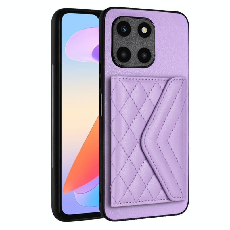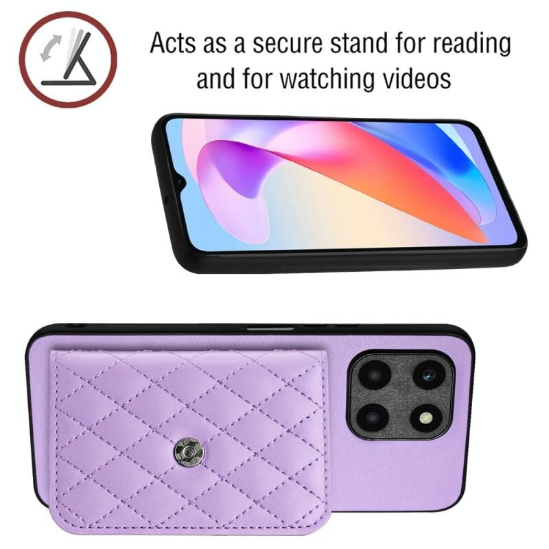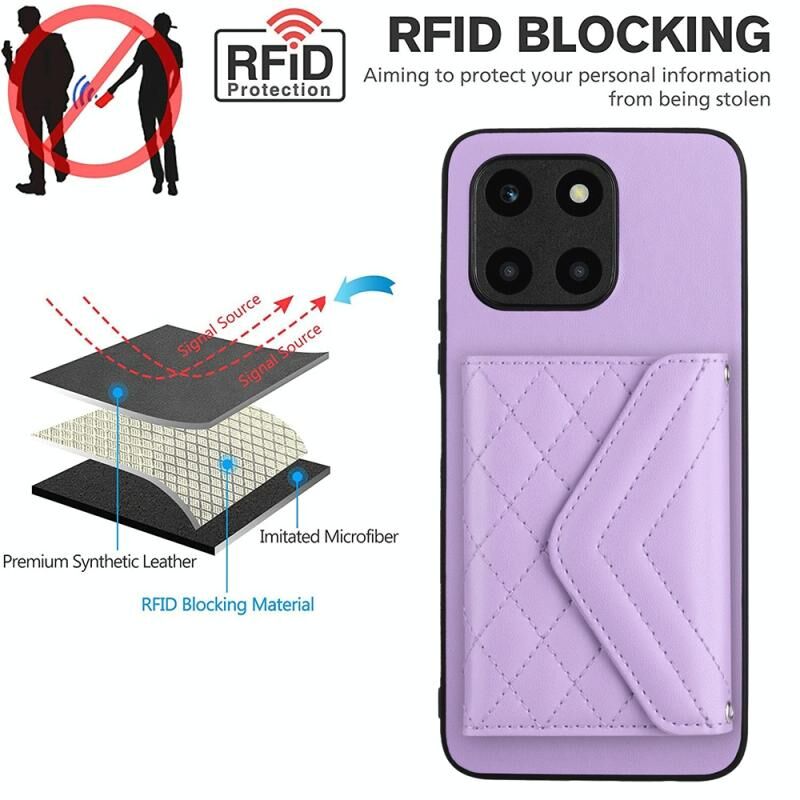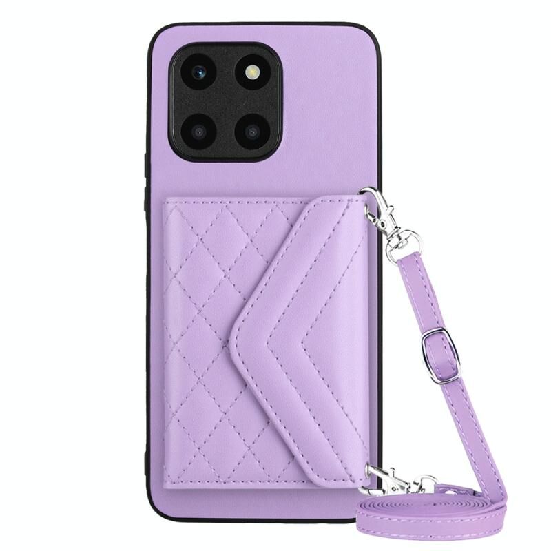 Για Honor X6a Rhombic υφή κάρτα τσάντα RFID υπόθεση τηλεφώνου με μακρύ κορδόνι (Light Purple)