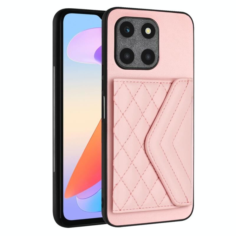 Για Honor X6a Rhombic υφή κάρτα τσάντα RFID υπόθεση τηλεφώνου με μακρύ κορδόνι (Ροζ χρυσός)