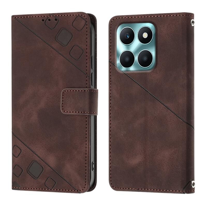 Θήκη κινητού τηλεφώνου Honor X6a με υφή δέρματος και ανάγλυφο σχέδιο (Ανοιχτό Μωβ)
